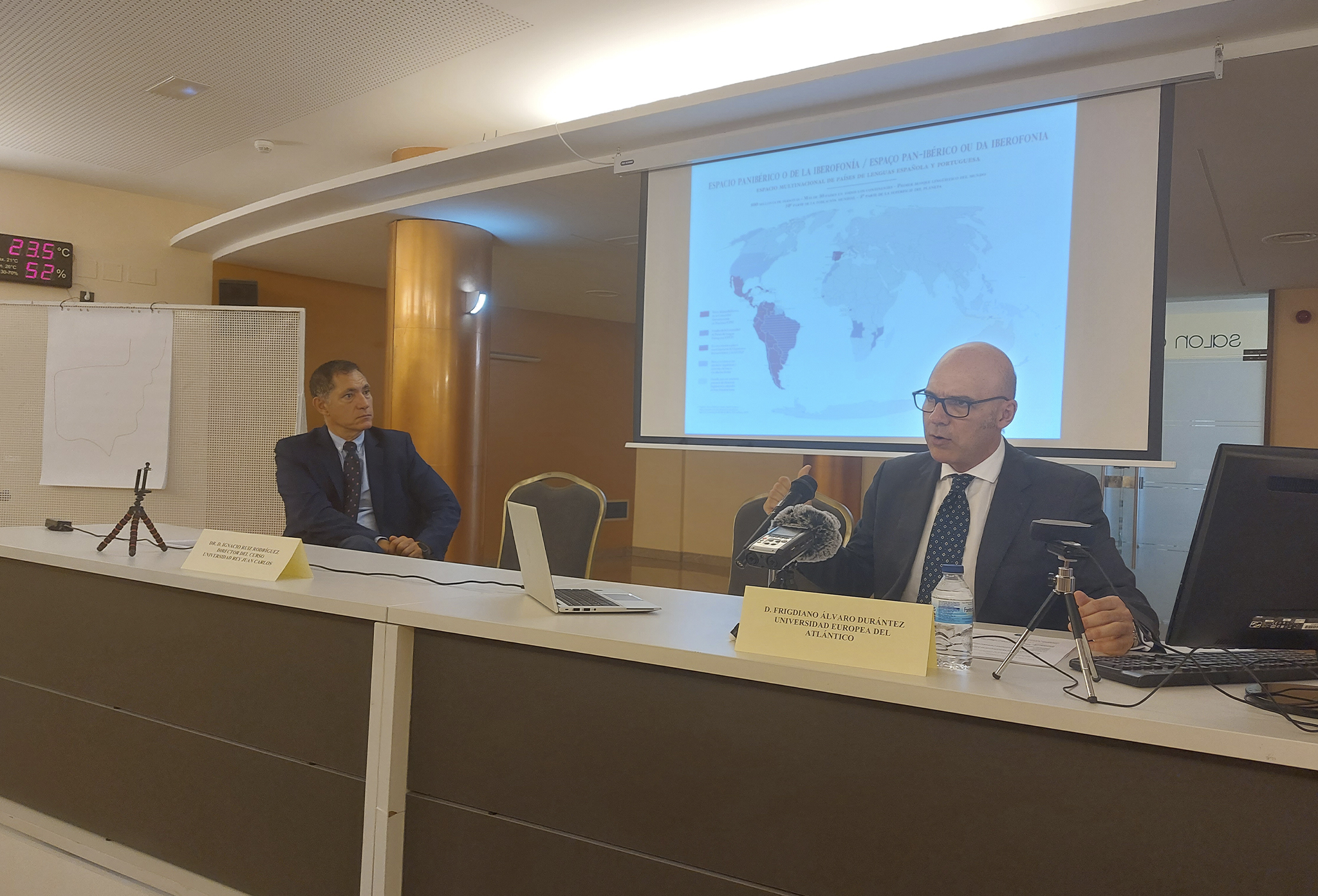 In this context, the meeting has counted on the singular participation of the European University of the Atlantic through the Fundación Universitaria Iberoamericana and the Cátedra FUNIBER de Estudios Iberoamericanos y de la Iberofonía. The Chair of Ibero-American Studies and Iberophony, with the participation of universities from Spain, Angola, Mexico, Puerto Rico and Colombia. The Chair was represented by its director, Frigdiano Álvaro Durántez Prados, professor at the European Atlantic University of Santander (UNEATLANTICO) and director of Institutional Relations at FUNIBER. Durántez gave the central lecture of the course on the theoretical conceptualisation and institutional development of Iberophony, issues that he has been promoting since the 1990s and of which he is considered the main expert and promoter.