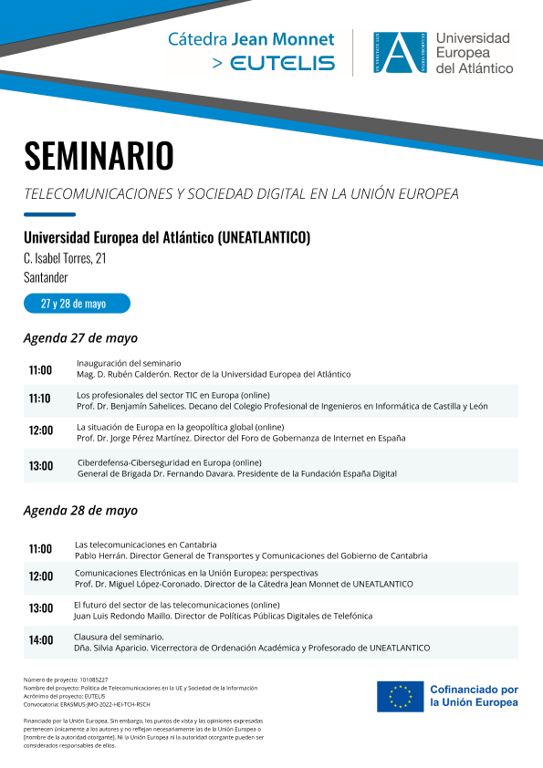 Some of the country’s most important institutions in the field of telecommunications will take part in the two-day event. The session will also provide an opportunity to take stock of the second academic year of the Jean Monnet Chair. The European Commission, through the Erasmus+ program, granted this university chair to UNEATLANTICO in 2022 with the aim of strengthening teaching and research on the integration of member states.