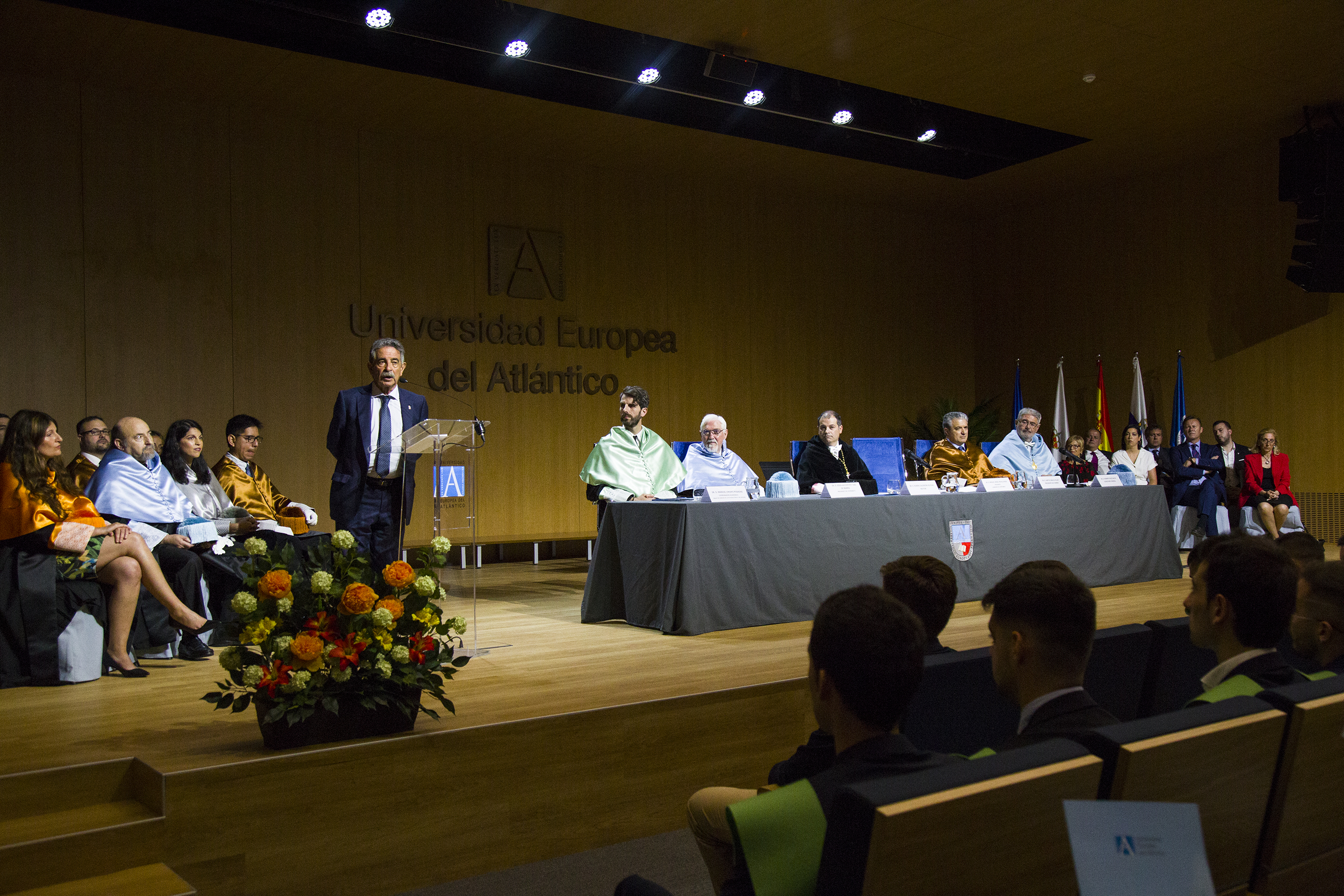 The president of the Government of Cantabria, Miguel Ángel Revilla, confessed to feel “nostalgic and feel envy” for the phase that now young graduates are starting, and stated that the European University of the Atlantic is “one of the main assets that has landed in Cantabria in these last years”.