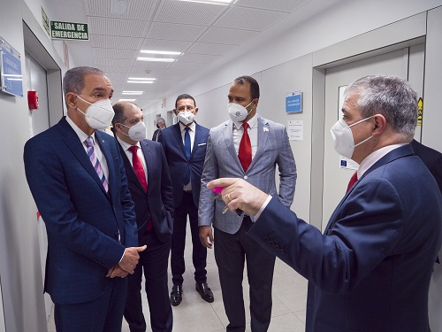 On Monday morning, Minister Franklin García, Deputy Minister Carlos Mendieta, and Counselor Rafael Menoscal were received by FUNIBER’s President, Santos Gracia; the President of the European University of the Atlantic, Jesús Arzamendi; the Rector, Rubén Calderón and the Secretary General, Roberto Ruíz, with whom they visited the campus laboratories, the auditorium, the radio station, the exhibition hall, the classrooms, and the sports facilities. They were also able to tour the different models of accommodation available at the UNEATLANTICO Residence, as well as the sports and academic facilities enjoyed by the residents.