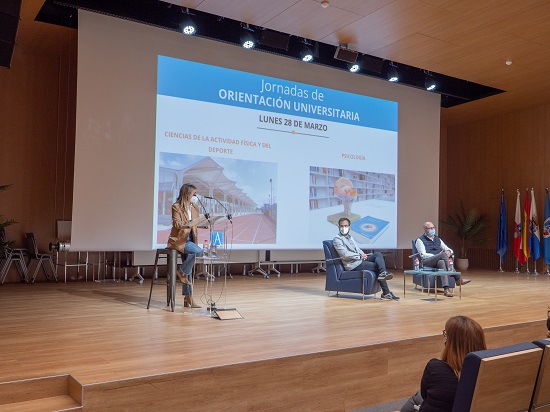 The degrees in Psychology and Physical Activity and Sport Sciences occupied the third session, which was opened by Dr. Carlos Lago, who recalled the moment when he chose to study CAFYD. “At that time I thought that the most natural career path was to be a Physical Education teacher and, curiously, it is practically the only one that I have not done. In any case, through this degree you are going to improve people’s health, both from the perspective of sports training, from the perspective of high performance, from the treatment of injuries in contact with physiotherapists. There is also an area of management, developing projects. In other words, helping people through movement”. Dr. Juan Luis Martín, for his part, indicated that “psychologists are dedicated to the study of behaviour and intervention in this field. It is a consolidated profession, both academically and scientifically”. Martín stressed that “psychologists do not read minds, we are in a scientific profession in which we try to use the best resources”.